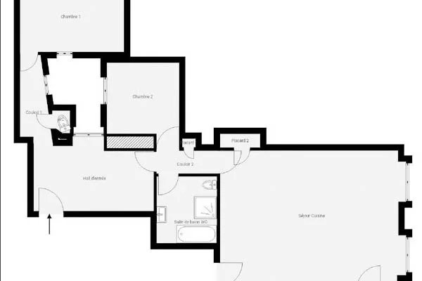 Sublime appartement d'angle de 3 pièces de 83,56m2 Loi Carrez, 92m2 surface au sol, avec beaucoup de charme.
