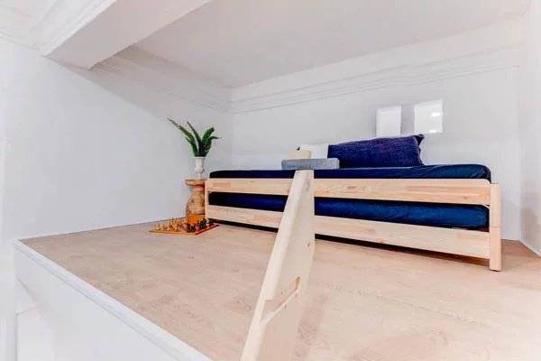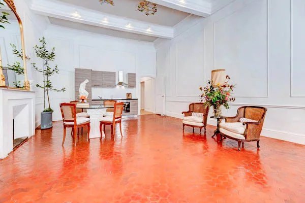 Il vous offre une grande entrée avec mezzanine, un sublime séjour avec des grandes fenêtres, une hauteur de plafond de 4m, des tommettes au sol, une cheminée et une cuisine ouverte équipée.